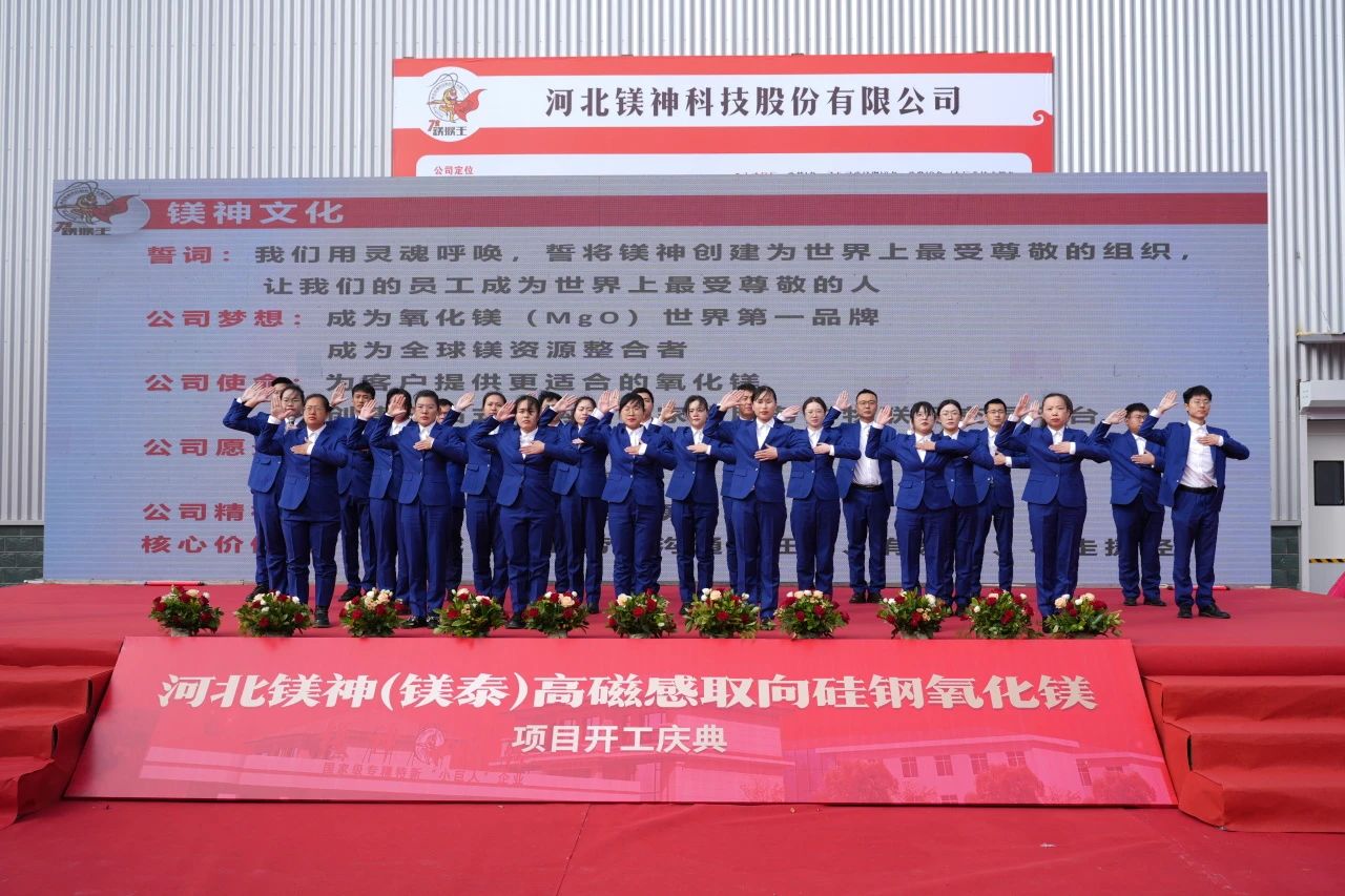 2024年10月19日,河北鎂神科技股份有限公司(以下簡(jiǎn)稱“鎂神科技”)在廣宗工廠隆重舉行“河北鎂神(鎂泰)高磁感取向硅鋼氧化鎂項(xiàng)目開(kāi)工儀式”,并于當(dāng)天下午舉辦了技術(shù)交流會(huì)。此次活動(dòng)匯聚了來(lái)自政府、行業(yè)協(xié)會(huì)、科研機(jī)構(gòu)及企業(yè)的眾多領(lǐng)導(dǎo)、專家和合作伙伴的熱情參與,共同見(jiàn)證中國(guó)硅鋼級(jí)氧化鎂歷史上一里程碑時(shí)刻。