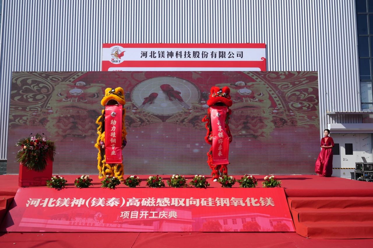 隨后,伴隨著鼓聲和音樂(lè),舞獅的跳躍騰挪、靈動(dòng)自如,為開(kāi)工儀式增添了喜慶的氛圍,也表達(dá)了對(duì)公司項(xiàng)目順利推進(jìn)的美好祝愿。接著,鎂神科技董事長(zhǎng)孫文先生發(fā)表了熱情洋溢的致辭,正式開(kāi)啟了高磁感取向硅鋼氧化鎂項(xiàng)目的輝煌篇章。