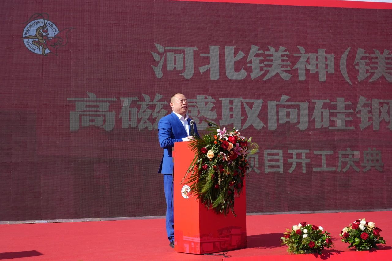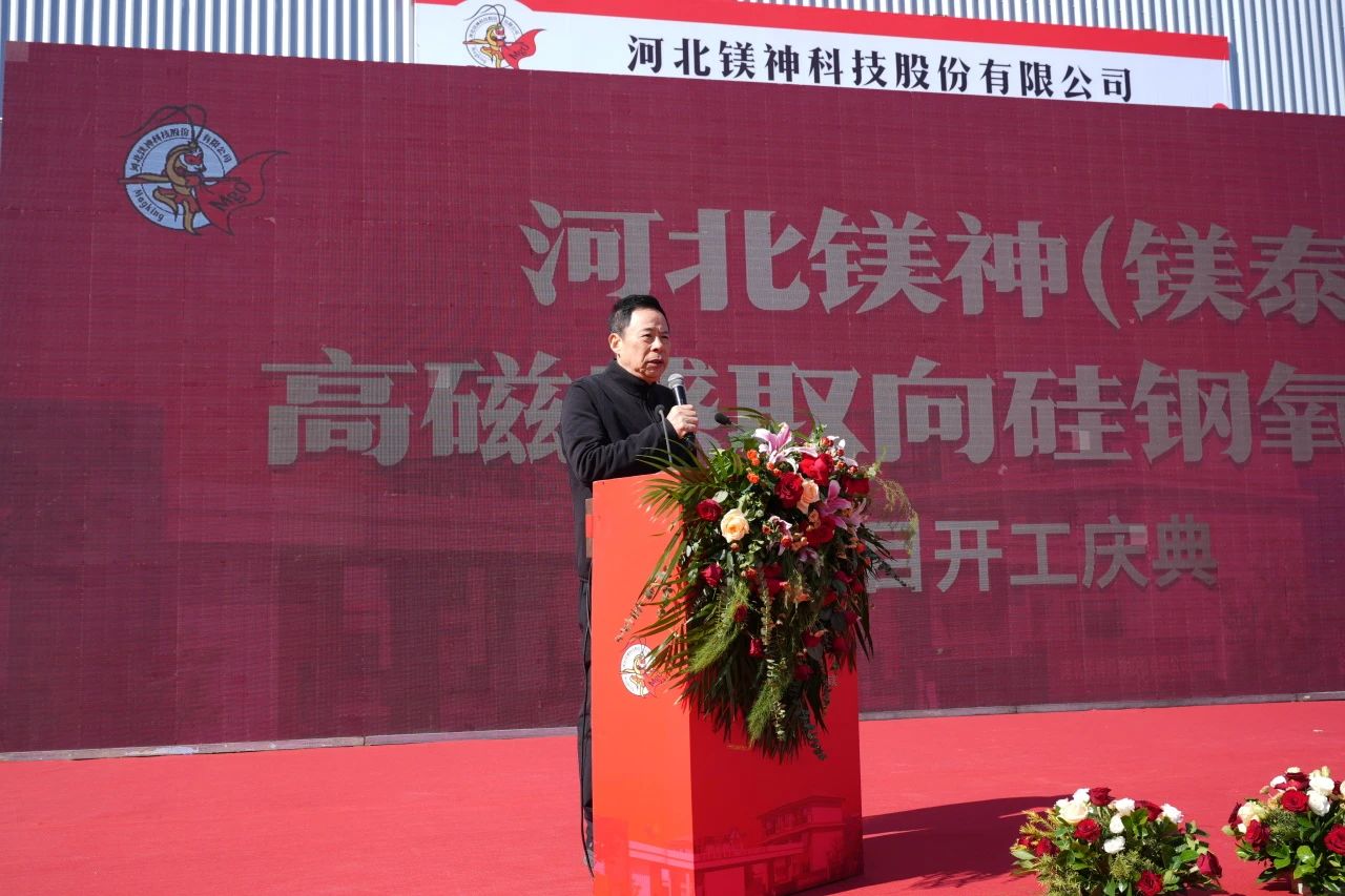 孫文董事長(zhǎng)首先對(duì)遠(yuǎn)道而來(lái)的各位領(lǐng)導(dǎo)、專家、合作伙伴和朋友們表示由衷的感謝。他提到,這一項(xiàng)目的順利啟動(dòng),離不開(kāi)社會(huì)各界長(zhǎng)期以來(lái)對(duì)鎂神科技的支持與厚愛(ài)。在致辭中,他回顧了公司21年來(lái)通過(guò)專注于氧化鎂行業(yè)的深耕與應(yīng)用研發(fā),從傳統(tǒng)氧化鎂產(chǎn)品逐步向高端化、精細(xì)化轉(zhuǎn)型升級(jí)的發(fā)展歷程。并分享了自己站在中國(guó)鎂鹽行業(yè)的前沿對(duì)硅鋼氧化鎂的見(jiàn)解。最后,孫文董事長(zhǎng)再次對(duì)與會(huì)嘉賓的支持表示感謝!并堅(jiān)信在鎂神的戰(zhàn)友們共同努力下,未來(lái)10年一定能實(shí)現(xiàn)世界級(jí)鎂質(zhì)新材料定制專家,世界級(jí)應(yīng)用研發(fā)領(lǐng)跑者,全球鎂資源整合者,世界級(jí)隱形冠軍締造者的戰(zhàn)略目標(biāo)。為中國(guó)一帶一路添彩,為中國(guó)制造爭(zhēng)光,為民族復(fù)興增磚添瓦,為中國(guó)鎂行業(yè)發(fā)展貢獻(xiàn)我們的一份力量。
